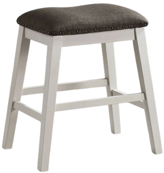 This collection combines two colors to achieve what could be described as a modern farmhouse aesthetic. Clean white wood is paired with dark gray fabric a palette that oozes sophistication yet also the country. These stools stow readily underneath the table.Read More