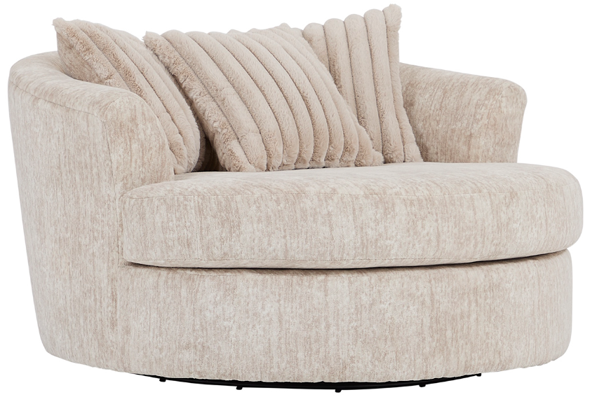 The Hughes Furniture® Galactic Parchment Barrel Swivel Chair blends modern elegance with supreme comfort. Upholstered in soft parchment-colored fabric, it features a stylish barrel design and a smooth swivel base for effortless movement. A perfect statement piece for any contemporary living space.Read More